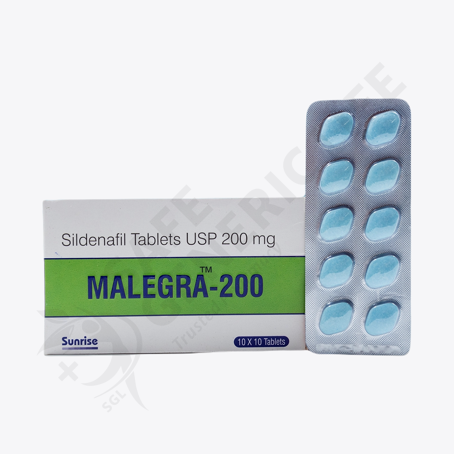 - The Malegra 200, is a tablet which is blue colored having the Diamond shape. The main workable and actionable substance is sildenafil citrate.